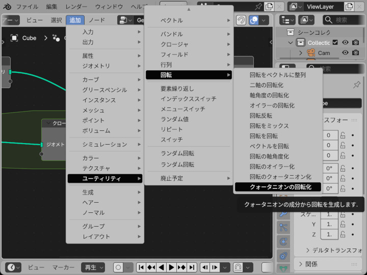 ジオメトリノードの種類が増えたため、ノードエディタのAdd メニューの階層が1段階深くなっています。